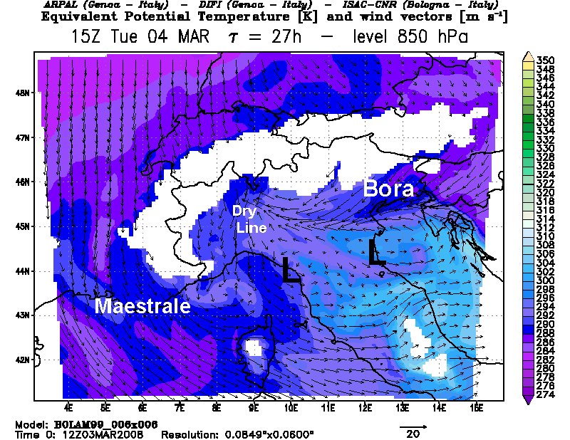 TEMPORALI E ROVESCI DI NEVE E’ il primo pomeriggio di martedì 4 marzo. Su molte zone della Lombardia i refoli di föhn hanno caratterizzato quasi tutta la mattinata. Poi all’improvviso poco dopo mezzogiorno crescono come funghi i primi cumulonembi della stagione. Una fioritura di nubi imponenti avanza da Est rendendo il cielo minaccioso. In molte zone della fascia pedemontana lungo l’asse Como-Lecco-Bergamo sono stati segnalati degli eventi temporaleschi accompagnati da brevi rovesci, spesso nevosi. Qualche fulminazione isolata ha raggiunto il basso varesotto. La seguente mappa elaborata da B. Grillini - sulla base esclusiva delle segnalazioni della rete CML - riassume gli eventi temporaleschi e nevosi che sono rimasti circoscritti sull'Alta Pianura. | 4 marzo 2008 - Eventi segnalati - Elaborazione di Bruno Grillini sulla base delle segnalazioni della rete stazioni CML | Gli accumuli pluviometrici sono stati generalmente scarsi, specie sulle zone pianeggianti. Le precipitazioni di natura convettiva si sono concentrate nel bergamasco con accumuli fino a 20mm, specie a ridosso dei rilievi ove la convezione è stata forzata dall’orografia. Qualche rovescio isolato si è manifestato anche sulle pianure orientali mentre sui settori alpini, ed in particolare sulla Valtellina, le precipitazioni sono state quasi del tutto assenti. | 4 marzo 2008 - Precipitazioni in Lombardia - Elaborazione di Bruno Grillini sulla base dei dati della rete stazioni CML | La bassa umidità della colonna d’aria ha permesso, in concomitanza con i rovesci più intensi, di osservare tra la pioggia qualche forma nevosa anche in alcune località pianeggianti. La conservazione del fiocco di neve è stata possibile anche con diversi gradi al di sopra dello zero grazie alla rapidità della caduta e soprattutto al calore latente sottratto all’aria durante la fusione. Dall’immagine seguente, scattata nel pomeriggio sulle Prealpi Bergamasche, è evidente nell’aria limpida una virga nevosa costituita da un isolato rovescio. L’aria fredda si propaga verso il basso grazie al passaggio evaporativo della precipitazione che talvolta non raggiunge nemmeno il suolo. La neve ha invece lasciato qualche traccia al suolo in montagna, mentre già sulle zone collinari con lo spegnersi dei rovesci è prevalsa del tutto la pioggia. | 4 marzo 2008 - Virga nevosa - Paladina (BG) - Foto scattata dal forumista CML Meteopedro | In qualche caso la neve è caduta sottoforma di snow pellet (in tedesco graupel) ovvero neve tonda prodotta dallo scontro del fiocco parzialmente fuso con goccioline d’acqua a temperatura negativa. Un fenomeno tipico dei primi moti convettivi primaverili da non confondere con la grandine, il cui accrescimento richiede correnti ascensionali molto più potenti in grado di sostenere a lungo l'embrione di ghiaccio. | EVOLUZIONE A SCALA CONTINENTALE La mappa relativa al 4 marzo 2008 evidenzia la spinta dinamica dell’Anticiclone delle Azzorre fin sulla Groenlandia e l’affondo di un'ansa del Vortice Polare, colma di aria molto fredda a tutte le quote, verso il Mediterraneo. Al suolo la corrente è entrata attraverso la porta del Rodano attivando un richiamo caldo-umido solo sulle regioni centro-meridionali italiane. Al contrario le regioni settentrionali si sono trovate esposte ad una corrente nordoccidentale che ha aggirato l’arco alpino convergendo in un minimo orografico formatosi tra la Toscana e l’Emilia. | | La spinta di un cuneo dell’anticiclone delle Azzorre verso NordEst ha tagliato (Cut-off) la saccatura isolando un minimo depressionario destinato ad affondare verso il Basso Tirreno. Il maltempo si è quindi concentrato sulle regioni italiane centro-meridionali, mentre il ritorno della ventilazione settentrionale ha riportato il cielo sereno sulle regioni di NordOvest. |  | L’evoluzione a scala continentale è sufficiente a spiegare l’assenza di un peggioramento organizzato ed importante in Lombardia. Infatti la nostra regione non ha risentito del richiamo meridionale che precede l’ingresso di un fronte perturbato atlantico. Anche il posizionamento del minimo depressionario non ha consentito una buona avvezione di moti vorticosi, se non l’azione piuttosto limitata del ritorno di un fronte occluso. Il tempo sarebbe infatti stato significativamente perturbato se la “Rodanata” avesse scavato una depressione sulla Costa Azzurra o sul Golfo di Genova. La causa che ha determinato la condizione di instabilità è da ricercare nell’arrivo in quota di aria molto fredda e ancor di più nell’importante fattore di sbarramento opposto dall’arco alpino che ha costretto la massa d’aria fredda ad aggirare l’ostacolo entrando da Est. | EVOLUZIONE A SCALA LOCALE Nella notte del 4 marzo la massa d’aria fredda sfonda con forti venti di maestrale dalla porta del Rodano, mentre in misura minore scavalca l’arco alpino sottoforma di föhn. La traiettoria dell’ingresso freddo genera un minimo orografico sul Golfo di La Spezia che a sua volta continua a richiamare le correnti da NordOvest. Sul Piemonte e sulla Lombardia il cielo è generalmente sereno e l’aria è piuttosto secca. | | Entro poche ore il blocco d’aria fredda riesce ad aggirare interamente l’Arco alpino: poco dopo mezzogiorno entra la Bora e la massa d’aria, ora umidificata nel passaggio sull’Adriatico, conquista la Pianura Padana. Sull’Italia iniziano a distinguersi i fronti della depressione, una struttura piuttosto complicata con due minimi “ad occhiale”. | | Un centro di convergenza sulla Romagna richiama aria umida dall’Adriatico, mentre attorno al minimo posizionato sull’Alta Toscana la nuvolosità inizia ad invorticarsi. | | Entro sera la depressione inizia già a colmarsi con rientro del fronte occluso da Est associato a nuvolosità stratiforme estesa ma poco produttiva in termini di precipitazioni. L’evoluzione è ben evidenziata dalla seguente mappa: notare l’andamento ciclonico del vento al