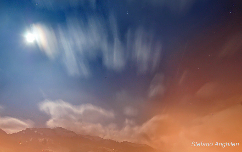 Non guardate direttamente il sole attraverso il mirino della vostra fotocamera. Un esposizione anche di un solo secondo potrebbe produrre danni irreparabili alle retine! Pure le lenti fotografiche non dovrebbero essere esposte al sole diretto senza filtri speciali. Per fotografare un'aureola servitevi di un oggetto che copra il disco solare. Questo, oltre ai vantaggi per la retina e la lente, faciliterà la scelta dell'esposizione corretta, poichè le differenze di illuminazione della scena decresceranno drasticamente. Per via della grande dimensione che questi fenomeni possono raggiungere, avere sempre con sè un grandangolo è un must. In ogni caso si può pensare di scattare diverse immagini adiacenti per poi tentare di sovrapporle a casa con un software (per esempio Photomerge di Photoshop). Cercate di massimizzare l'area che poi andrete a sovrapporre per rendere più facile il lavoro del programma vista la non completa affidabilità di tali softwares. In generale, evitate di includere aree con illuminazione troppo diversa. Tenete conto che, per una questione di geometria dell'immagine e distorsioni, si uniscono meglio foto con lunghezza focale di circa 50mm (che indicativamente corrisponde al valore di 35mm delle vecchie reflex a pellicola). Potrebbe essere una buona idea scattare le fotografie da unire successivamente in verticale, per avere una maggiore ridondanza delle informazioni e transizioni più frequenti e uniformi. In questo caso però tenete conto delle risorse computazionali che verrebbero mobilitate e quindi non cercate di creare panoramiche con angoli di visuale orizzontale troppo ampi. Se vi trovate a fotografare in pieno giorno, il filtro polarizzatore (molto comodo è quello circolare) può migliorare la resa delle vostre immagini. Insieme al paraluce dell'obiettivo, permette di eliminare riflessi, di dare omogeneità alla foto e, soprattutto, di offrire un maggior contrasto e definizione in quegli effetti dove i colori sono appena accennati o dove si mescolano con il bianco delle nuvole. In accoppiata ad esso, ma solo in presenza di forte luce, possiamo utilizzare i filtri neutral density di varia graduazione. Essi aiutano ad abbassare i valori di esposizione in prossimità del sole e rendono così l'illluminazione della scena un po' più uniforme. Ovviamente non ha alcun senso aumentare la sensibilità (ISO) tranne forse per le corone in notturna, quindi tenetela al minimo. Per via dello scarso risalto del soggetto rispetto allo sfondo, la compressione digitale è un nemico quantomai pericoloso. Evitatela! Scattate preferibilmente in raw e, se siete costretti al JPEG, mantenete la qualità sempre al massimo. Stefano Anghileri |