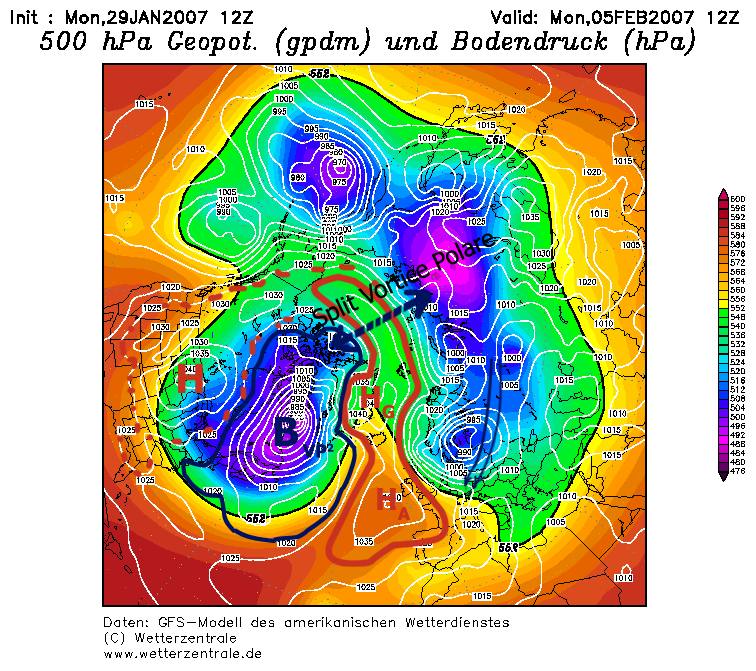 | La settimana appena trascorsa è stata l’ennesima di una stagione invernale pressochè non pervenuta, caratterizzata da assenza di precipitazioni e temperature sopra la media su buona parte dello stivale italico. In media sono invece la calabria ionica, la sicilia orientale e il salento che è leggermente sotto rispetto alla media per il periodo. Figura 1: anomalie termiche e delle precipitazioni in Europa – fonte NCEP. Quello che ci aspetta questa settimana è un flusso di correnti atlantiche, con peggioramenti intervallati da brevi miglioramenti. Una configurazione quasi old-style, anche se in maniera più debole, ma in grado in ogni caso di far entrare nel mediterraneo dei minimi depressionari. Potrebbe piovere sul nord dell’Italia, con successiva estensione dei fenomeni anche al centrosud; nella giornata di domani, giovedì e (forse) nella giornata di sabato. Neve in montagna dai 1300mt circa. Le temperature dovrebbero mantenersi leggermente sopra la media del periodo. Allego nell’articolo un’immagine (figura 2) a scopo didattico. Una situazione molto simile a quella che andra a crearsi. Figura 2: esempio di “famiglia” di cicloni extra tropicali, in seno alle correnti atlantiche. In precedenza, parlando del peggioramento, ho usato il condizionale non a caso. Dall’analisi dei modelli odierni si nota una certa instabilità previsionale delle consigurazioni bariche nel medio lungo periodo. Le osservazioni sul breve e medio periodo, siano interpretate come linee generali della tendenza, in quanto non è intento di questa rubrica fare delle previsioni. In tal senso, v’invito sempre a leggere il bollettino meteorologico regionale del sito CML che è aggiornato quotidianamente. Abbiamo accennato all’instabilità del modelli matematici. Nella settimana appena trascorsa, i principali GM, hanno registrato diversi cambiamenti nella tendenza evolutiva rispetto alle loro stesse emissioni giornaliere. Possiamo imputare questa fisiologica difficoltà ad un evento che si è consumato nel nostro emisfero nord: lo split del vortice polare. La difficoltà dei modelli più che altro sta nell’inquadrare bene la situazione e, di conseguenza, che cambiamenti può comportare sulla configurazione barica generale. Non solo… lo split è avvenuto in maniera completa, sia in stratosfera, sia in seguito in troposfera; quest’ultima, in questi casi, è fortemente condizionata dalla stratosfera. Nel precedente articolo, nella mia analisi, avevo proposto una logica sequenza evolutiva dettata dalle carte fino a quel momento a disposizione. Alla fine si è realizzata la prima soluzione (seconda possibilità). Rispetto a quanto osservato nell’articolo, ci sono stati dei cambiamenti sensibili delle forze disposte sullo scacchiere. Figure 3 e 4: modello GFS emisfero nord. La prima carta mostra la previsione per oggi del run 12z del 29/01/2007; la seconda è l’analisi odierna della configurazione del run 00z. Come si può vedere le variazioni sono state notevoli. Nell’analisi del run 00z d’oggi, si nota immediamente la diversa disposizione dell’asse del lobo principale splittato, rispetto alla previsione del 29/01/2007. Inoltre la posizione del VP più orientale, ha disturbato l’azione della rimonta dell’HP Azzorre, inducendolo a fermarsi nella sua sede naturale. Il blocking derivato ha lasciato la sua parte di GPT (geopotenziali) più debole sull’Atlantico centrale. Altra nota importante: il 29/02/2007 il lobo canadese del VP era visto come secondario a quello situato sulla Siberia orientale. Al contrario oggi osserviamo che è l’esatto contrario. Il minimo in discesa da nordest non ha avuto la spinta necessaria per proseguire il suo percorso verso il mediterraneo (con annessa aria fredda artico-continentale). La seconda alternativa (atlantico basso) sarà quindi privata dell’apporto d’aria fredda che avrebbe in ogni caso dato i connotati invernali ai peggioramenti di questa settimana. In definitiva, ancora una volta l’inverno ha deciso di far marciare le sue truppe in altri territori e si tiene bene a distanza dal mediterraneo. Dando uno sguardo all'evoluzione della tendenza nel lungo periodo, i modelli matematici della stratosfera e i global model troposferici, fanno intuire l’isolamento di una cellula anticiclonica sulla penisola scandinava. Quest’ultima si ritroverebbe a fronteggiare il ricompattato vortice polare. Vista l’incertezza previsionale di questi giorni è bene mettere subito in chiaro che questa soluzione andrà continuamente verificata e nel caso confermata. Una volta accertata la possibilità che tale evoluzione si realizzi, si potrà analizzare l’influenza che avrà sull’Italia. Anche per oggi è tutto... a presto con nuovi aggiornamenti. |